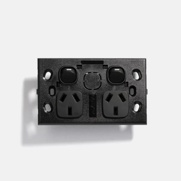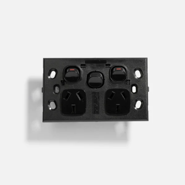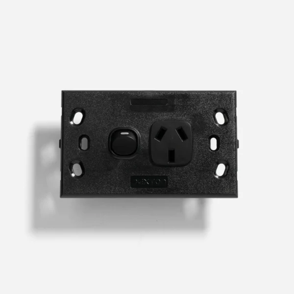 Black standard single power point 10A, extra switch 16A