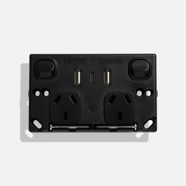 Matte Black double power point with double USB + C type (4.2A) (50pcs BULK BUY)